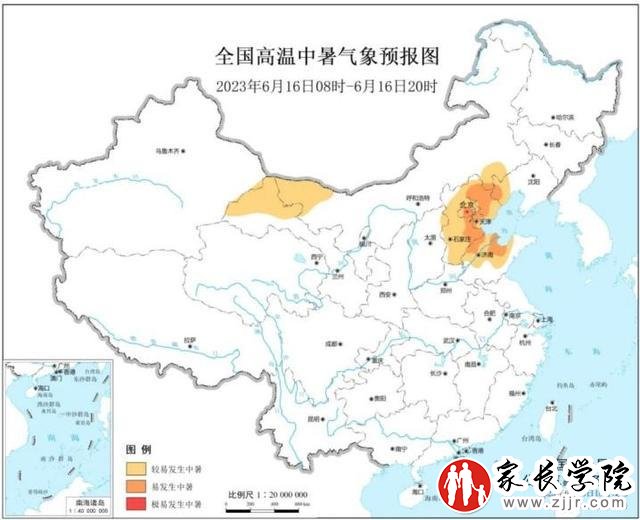 6月16日,全国高温中暑气象预报,中央气象局公共气象服务中心图